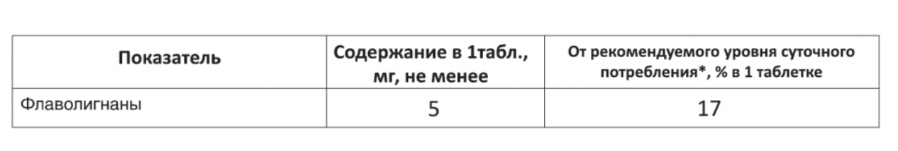 взрослым по 2 таблетки 2 раза в день во время еды, что обеспечивает среднесуточную потребность в флаволигнанах – на 100%. Длительность курса – 20 дней.